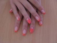 Наращивание ногтей гелем. Дизайн комбинированный: коралловый френч + лунный маникюр.