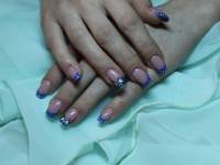 Коррекция гелем + синий френч. Дизайн "горох и бант" акриловые краски.