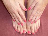 Ногтики после маникюра и педикюра. Коралловое покрытие ногтей + акриловые краски.