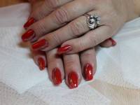 коррекция ногтей гелем. Покрытие красным гель-лаком + роспись