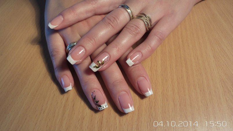 Покрытие натуральных ногтей гель-лаком. Дизайн: френч + золотая фольга.
