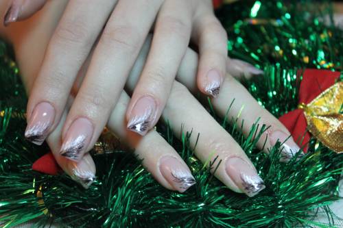 Наращивание ногтей + роспись гель краской. Рисунок перышко.